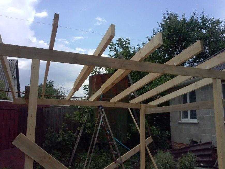 Теперь расскажем немного о кровле. Стропила на такой беседке, должны иметь длину в два метра. Если планируется изготовлять выступающую кровлю, то необходимо знать, габариты будущего сооружения будут два с половиной квадратных метра с каждой из сторон.