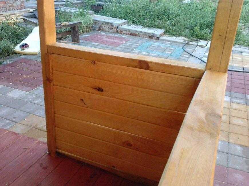 - Полуоткрытые. По всему периметру строения устанавливаются деревянные решетки, ограждения, небольшие бортики.