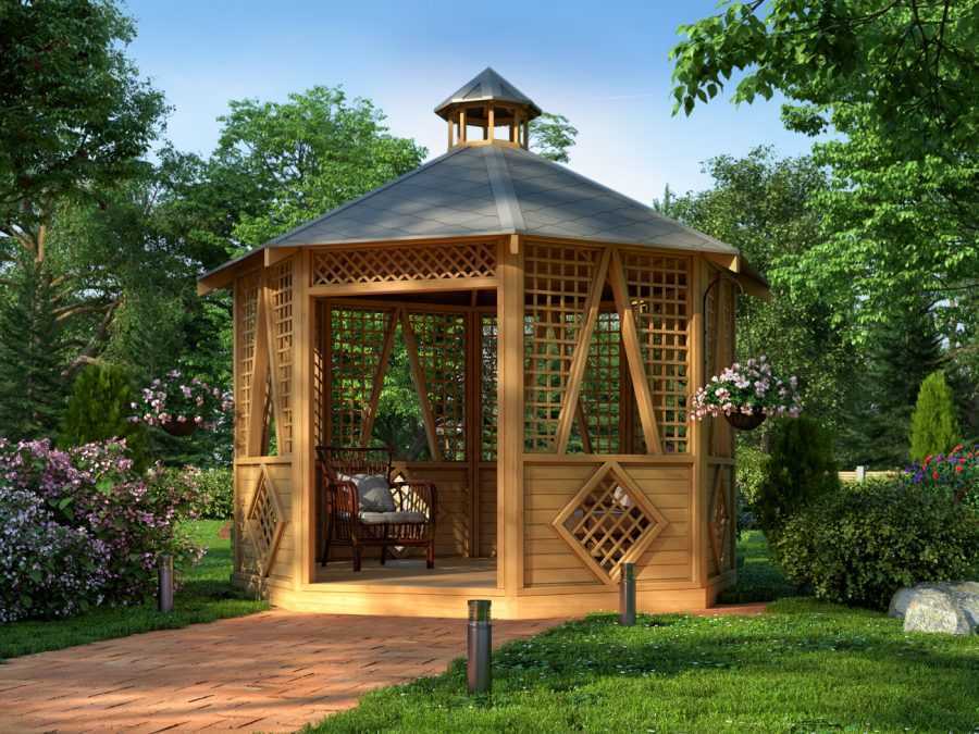 Если возводится беседка своими руками из дерева, то рекомендуется выбирать именно материал из этих трех пород деревьев.