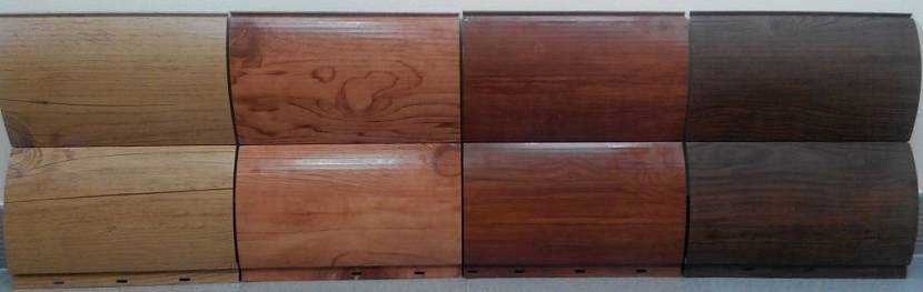 - деревянный — делается из лиственницы, кедра, дуба, берёзы, ольхи, ясеня и других пород деревьев. Волокна прессуются под высокой температурой и давлением. Этот вид не боится морозов, дополнительно утепляет и благородно смотрится, но неустойчив к воздействию влаги и требует ухода, а служит не более 15 лет;