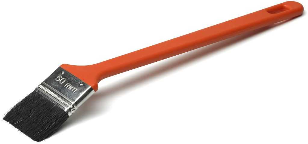 Процесс нанесения краски наиболее прост, если использовать качественную малярную кисть. Лучший выбор – полужесткая щетина, с достаточно мягким и ровным краем. Выбор инструмента зависит и от объема работ. Кисти из синтетической щетины более износостойкие.