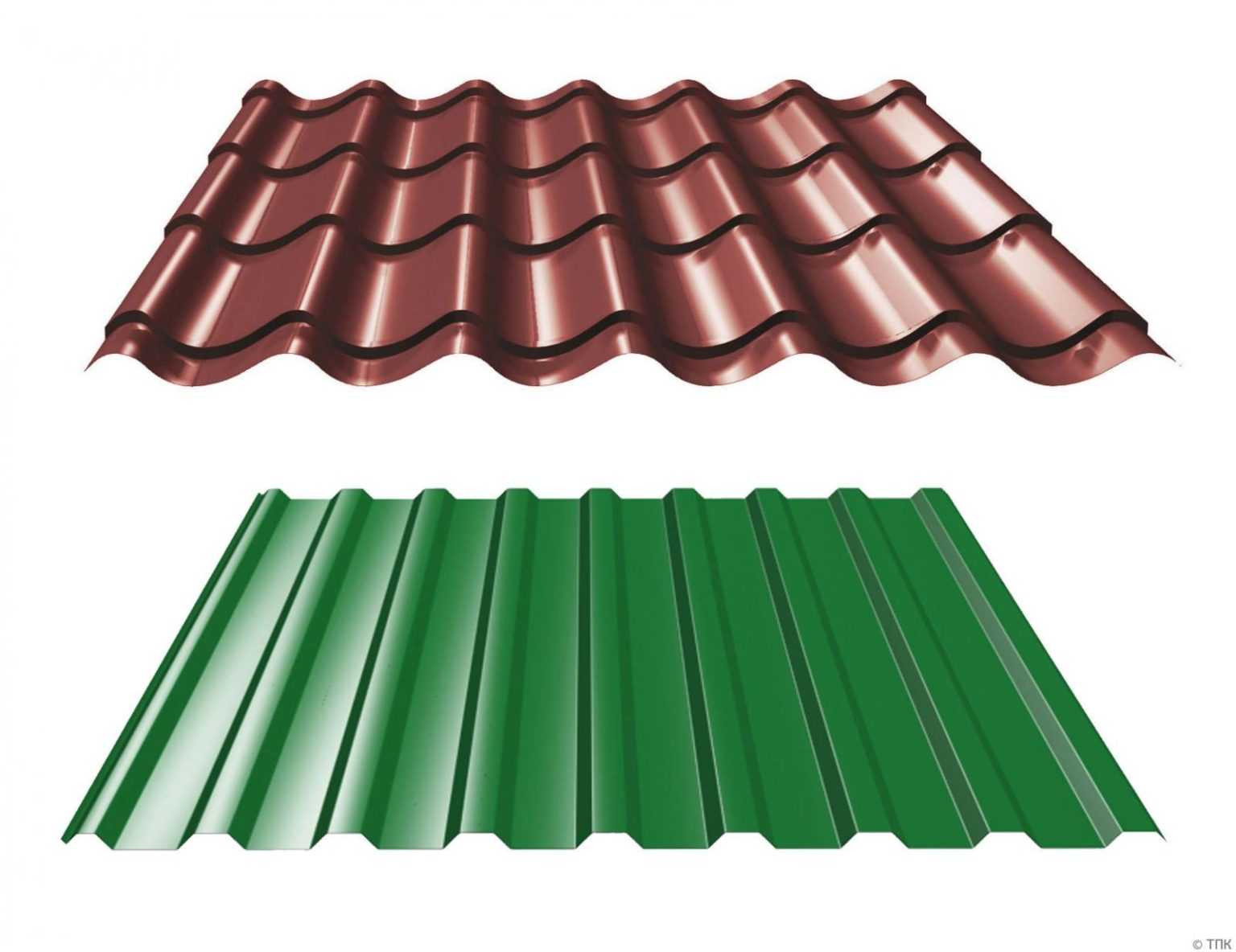 Родственные материалы изготавлены из оцинкованного стального листа до 1,1 мм, покрыты для защиты полимерным слоем и окрашены. Профнастил имеет волны разной формы, металлочерепица обладает сложным рельефным рисунком, который имитирует черепицу. При монтаже учитывают необходимый нахлест две волны или один ряд черепицы. Доборные элементы позволяют более качественно защищать кровлю от протеканий. Следует учитывать, что высота профиля листов профнастила должна быть больше 18 мм.