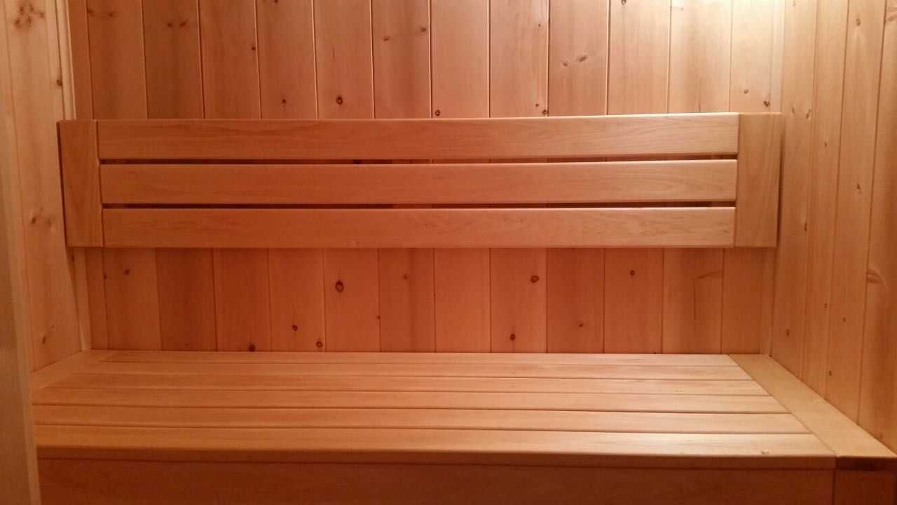 Чтобы обеспечить посетителям бани максимальный комфорт, укомплектуйте полок дополнительной спинкой. Для этого несколько отполированных досок крепят на стену, к которой примыкает полок, набивая их на вертикальные подпорки из брусков. Доски следует размещать на расстоянии в 5-10 см, чтобы между ними не застаивалась влага. Спинку делают из такой же древесины, что и полок. Она позволяет удобно располагаться на полке и облокотиться о стену, не боясь получить ожог. На торцевой стене нередко набивают специальные опоры для ног. Опытные банщики советуют ложиться на полок и поднимать ноги чуть выше головы. Так они быстрее прогреются.