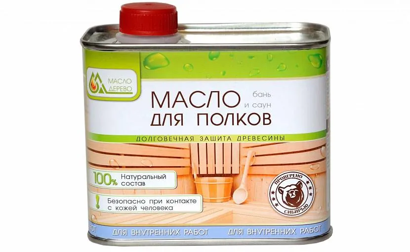 При обработке парилки пользуются масляными пропитками. Однако при образовании на древесине лаковой пленки, она быстро нагревается и обжигает человека. Поэтому в целях предотвращения такой ситуации, полы и скамейки покрывают масляными защитными составами.
