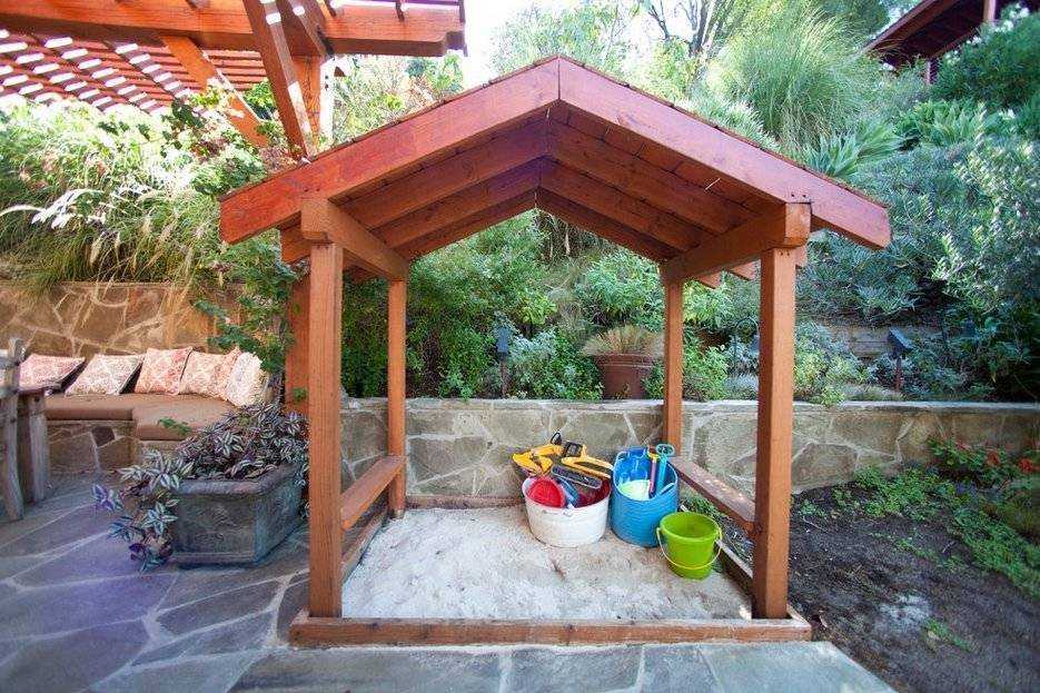 Это самая распространённая детская забава, которая есть в каждом дворе. Нет такого малыша, которого не увлекало бы создание «куличиков» из песка и строительство всевозможных пещер. В песочнице ваше чадо будет развивать фантазию и учиться создавать новые объекты. Ранее они имели вид квадратного ящика из неструганых материалов. Сегодня ситуация изменилась, взрослые всё больше заботятся об удобстве и безопасности своих детей. Главное новшество — это, конечно же, создание крышки, которая прячет песок от домашних животных.