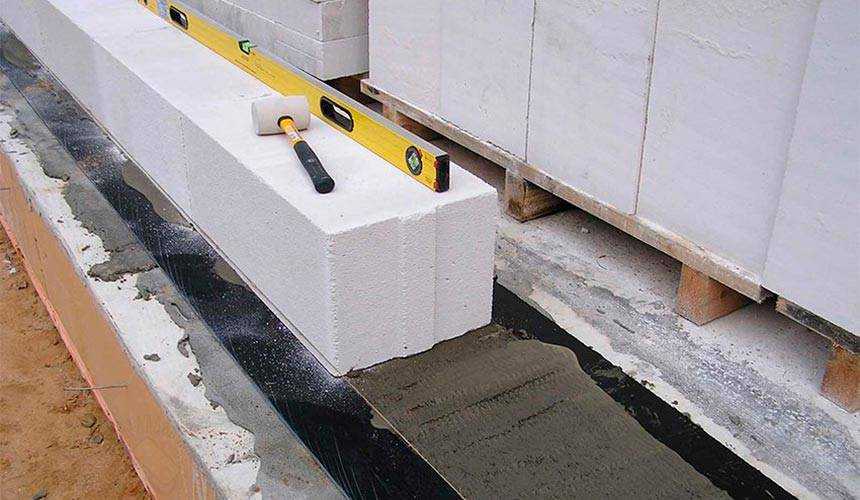 Работы по его устройству могут длиться 3 недели и больше Обратите внимание, что пористость материала способствует повышенному поглощению воды, поэтому обязательно нужно провести гидроизоляционные работы, уделив им особое внимание. Кладка стен. Возводить стены из газоблока гораздо легче, чем из кирпича Так как блоки большие и ровные, выполнить ее можно очень быстро