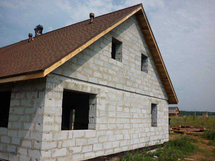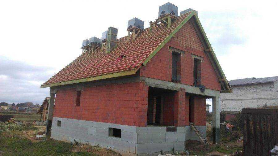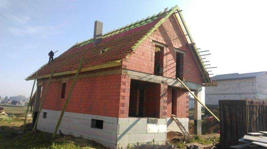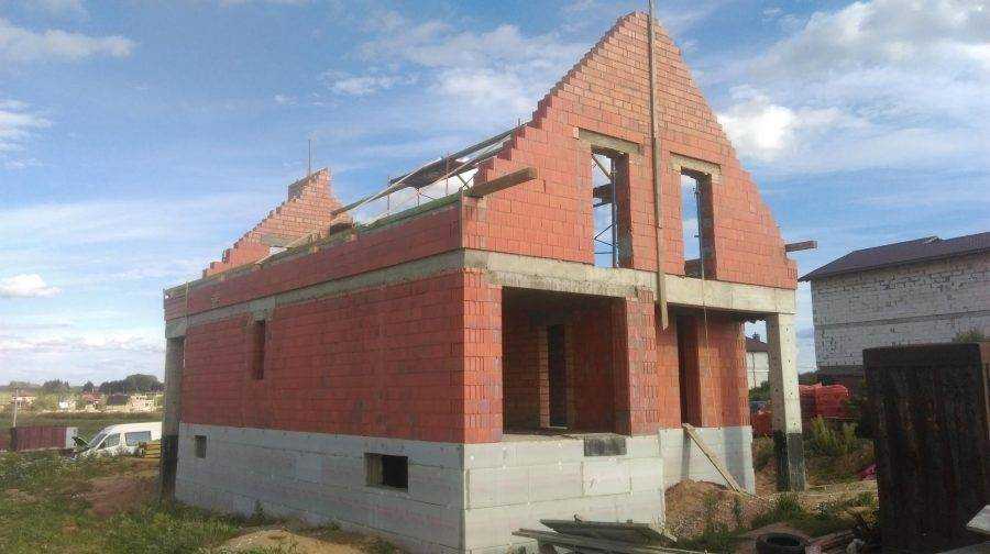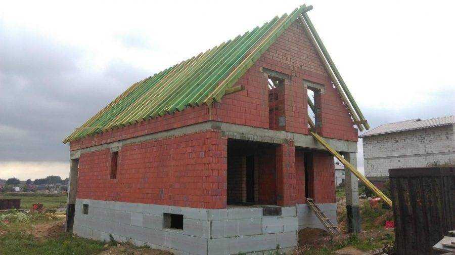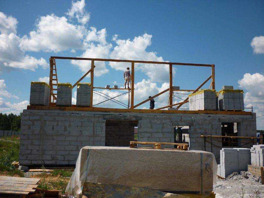 После чего оформляются карнизы и фронтоны, отливы и водосточные трубы. Построенный дом невозможно эксплуатировать до тех пор, пока стены не подведены под крышу.