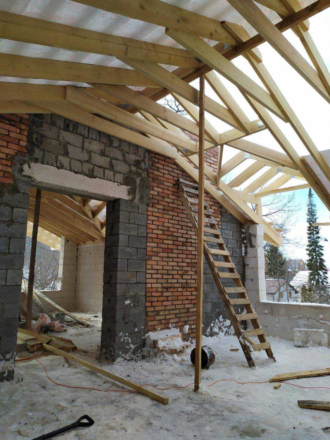 - Установка стропил двускатной крыши со всеми её комплектующими элементами.
