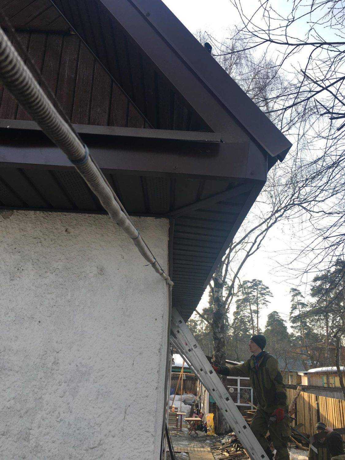 Внешние работы по установке крыши заканчиваются подшивкой карнизов и обустройством фронтонов, если они не являются частью стен. После этого переходят к внутренним отделочным работам и утеплению крыши, если в этом есть необходимость. Подробно об утеплении кровли мы поговорим в следующих статьях.