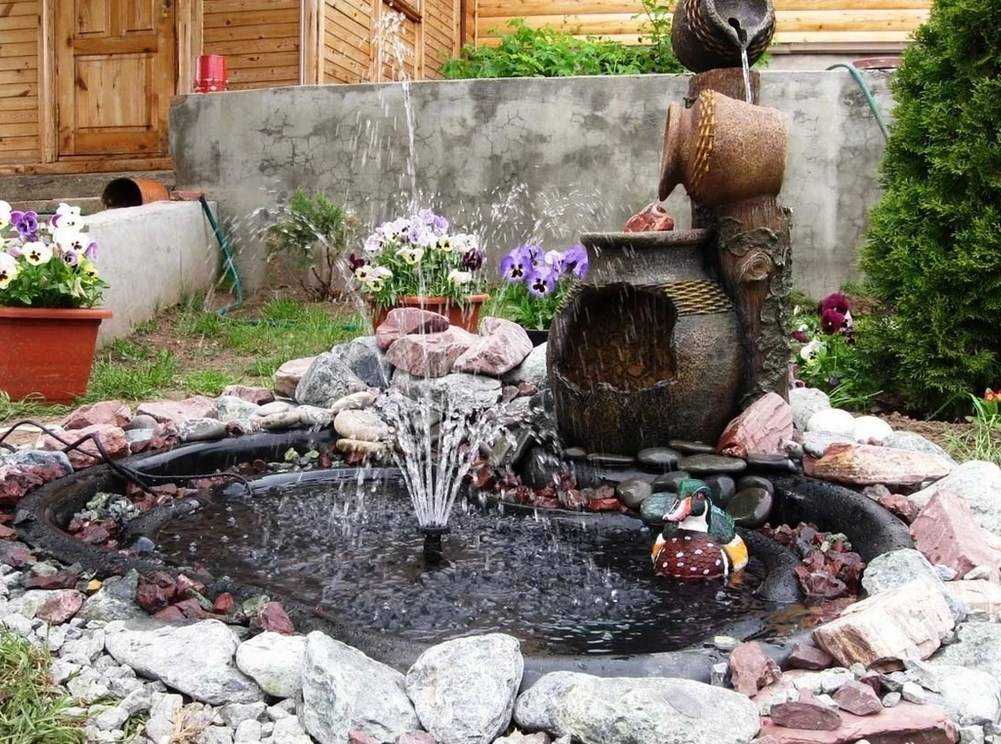 Если дачный домик оборудован водопроводом, то при желании можно изготовить небольшой фонтанчик без оборудования его насосом.