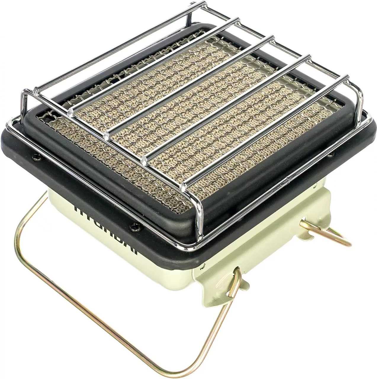Очень удачная модель, в которой сочетается малый вес, удобство использования, универсальность и дешевизна. Начнем с того, что этот компактный газовый обогреватель имеет массу всего в 1 кг – конечно, это делает устройство хорошим выбором для дальних походов. Прекрасно работает как на пропане, так и на его смеси с бутаном. Мощности в 2.5 кВт вполне достаточно, чтобы отапливать довольно большую площадь, не говоря уж про просторную палатку. Очень прост в использовании, причем использовать его можно не только в качестве обычного обогревателя, но и удобной, безопасной плитки