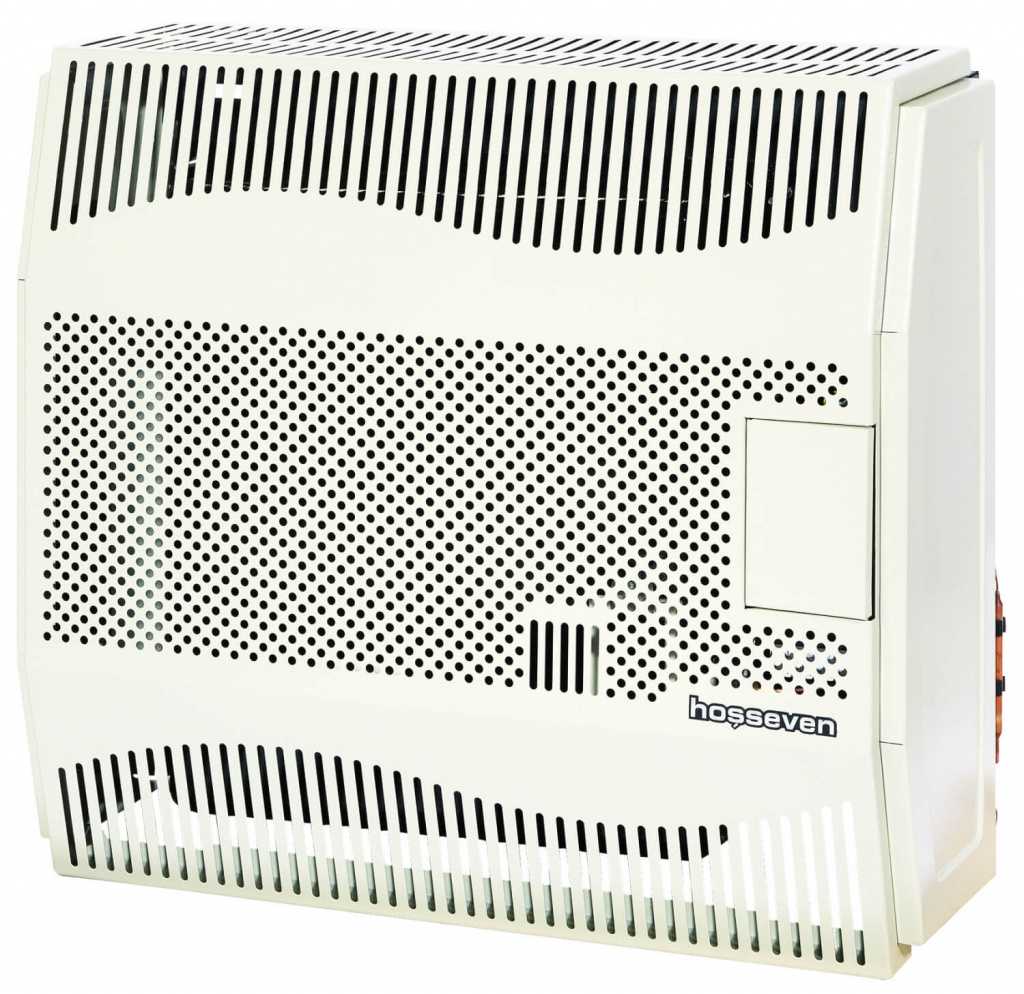 Такой тип газовых обогревателей работают по принципу конвенции. Через небольшие продолговатые отверстия, находящиеся на корпусе снизу и сверху, холодный воздух поступает внутрь устройства, где происходит его нагрев с помощью теплообменника. В результате, он покидает внутреннюю часть обогревателя, вырываясь на поверхность через верхние прорези. Для более производительной работы техники ее оснащают вентилятором, способствующим активной конвекции воздуха. Включается он с иконки, находящейся на корпусе.