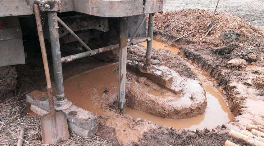 - Наличие грунтовых вод тоже очень затруднит работу.