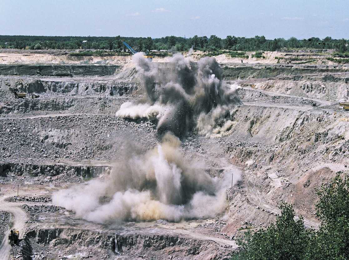 Наиболее агрессивный метод. Суть заключается в бурении по контуру участка углублений, в которые затем помещается взрывчатка. После подрыва отколовшиеся куски породы сортируются и отправляются на дальнейшую обработку и распил.
