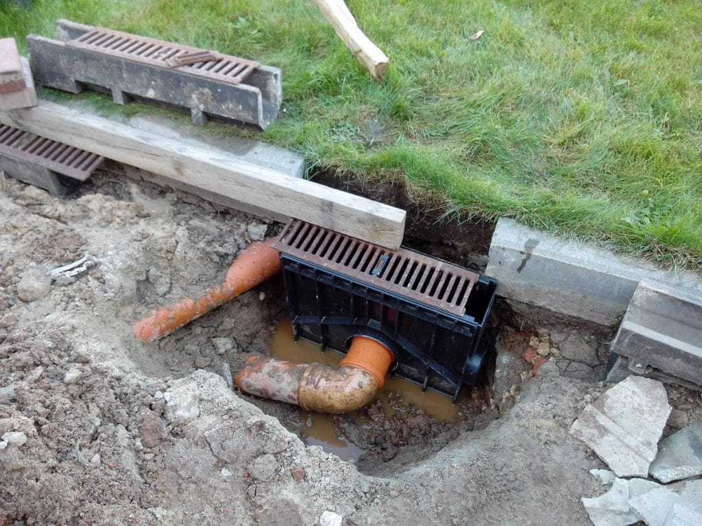 - выкопать траншеи с уклоном в сторону водоприемного колодца 2 см на каждый метр. Глубина будет составлять примерно 1-1,5 метра для песчаного грунта, 80 см для суглинка и 70-75 см для глинистой почвы;