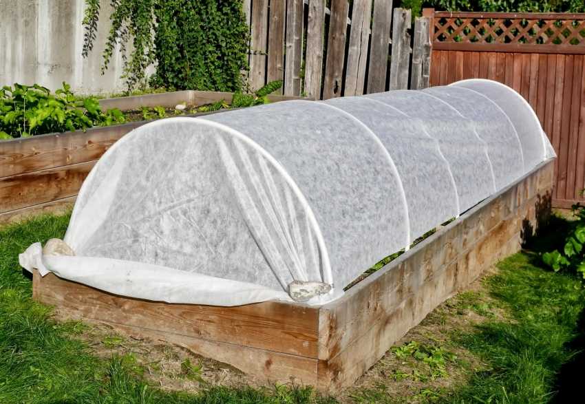 Укрывной материал можно не прикреплять к дугам, а использовать тяжелые камни или кирпичи для фиксации у основания парника