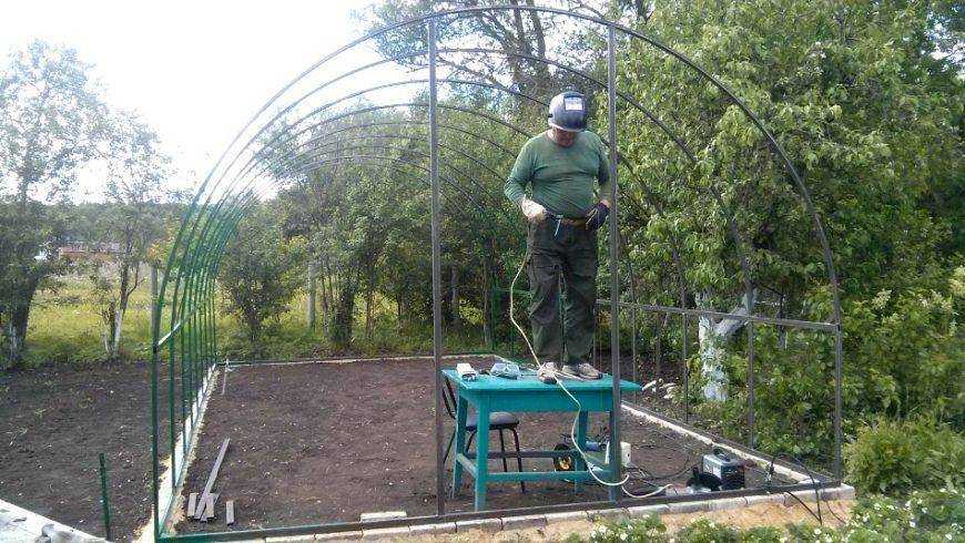 Каркас изготавливается из металла или дерева. Если планируется эксплуатация теплиц зимой, то требуется продумать крепление их на земле и устойчивость. Конструкция должна выдерживать слой снега.