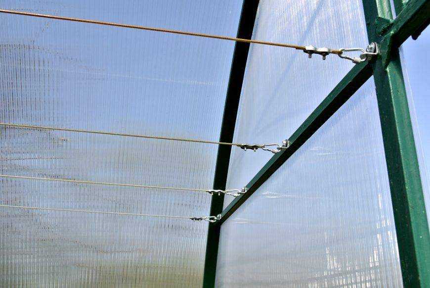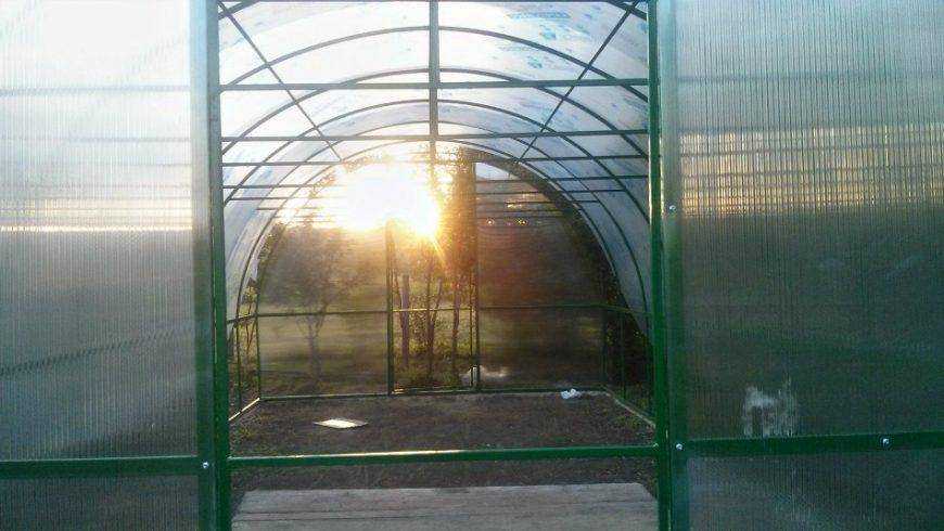 Ширина теплицы должна быть такой, чтобы в ней было удобно работать и было комфортно расти культурам, без риска повреждения из-за тесноты. Необходимо учитывать ширину дверного проёма (не менее 56 см); секций (до 97 см); пространство между секциями (не менее 60 см).