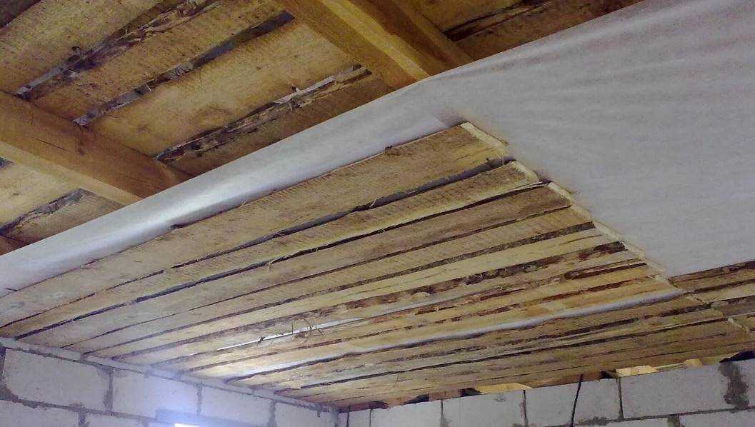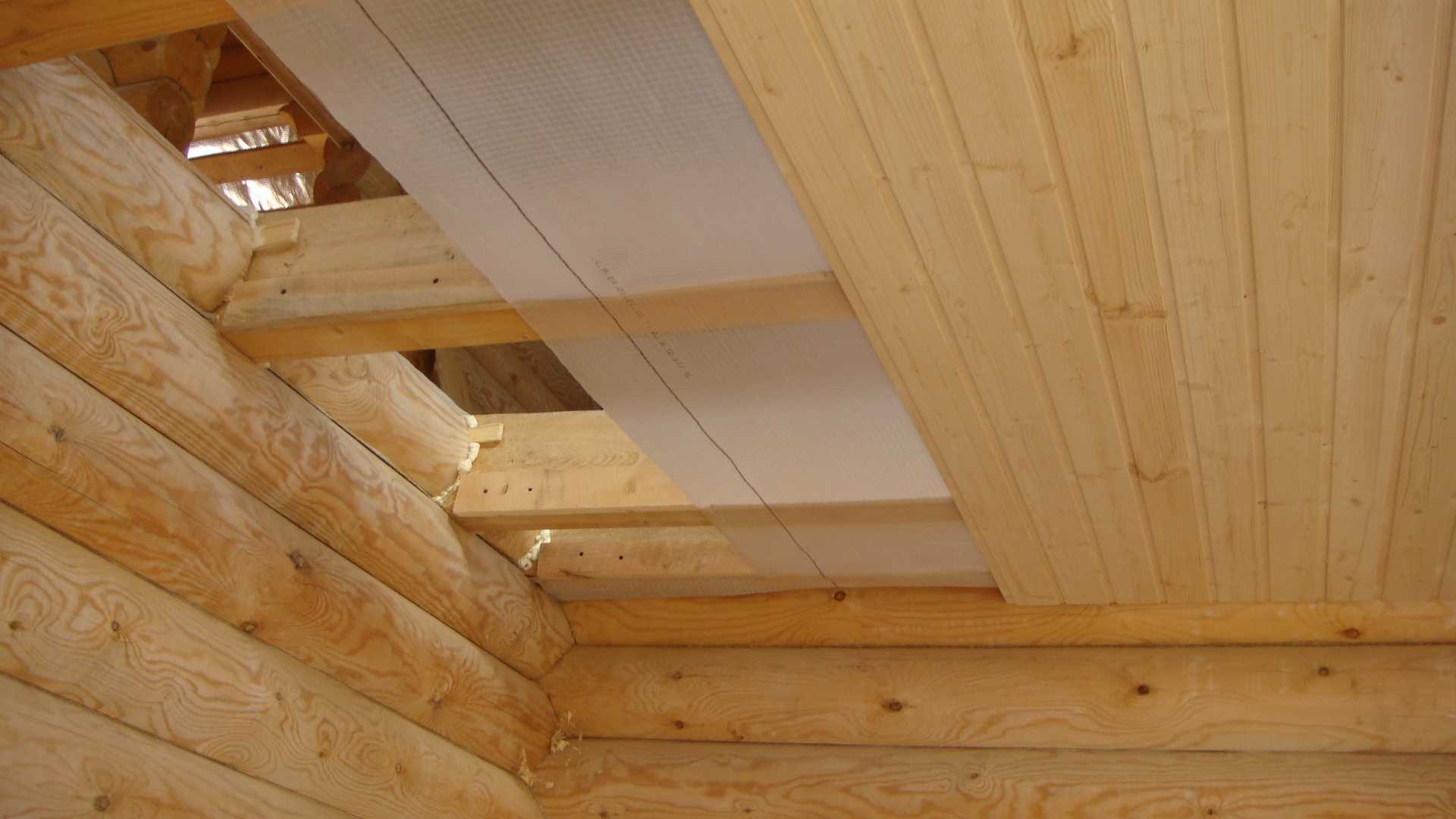 - В виду высочайшей чувствительности древесного потолка к переувлажнению, по мере надобности, обустройте водоизоляционный слой сверху перекрытия;