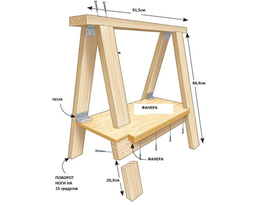 Чтобы козлы получились надежными и удобными, нужно следовать следующей схеме изготовления: