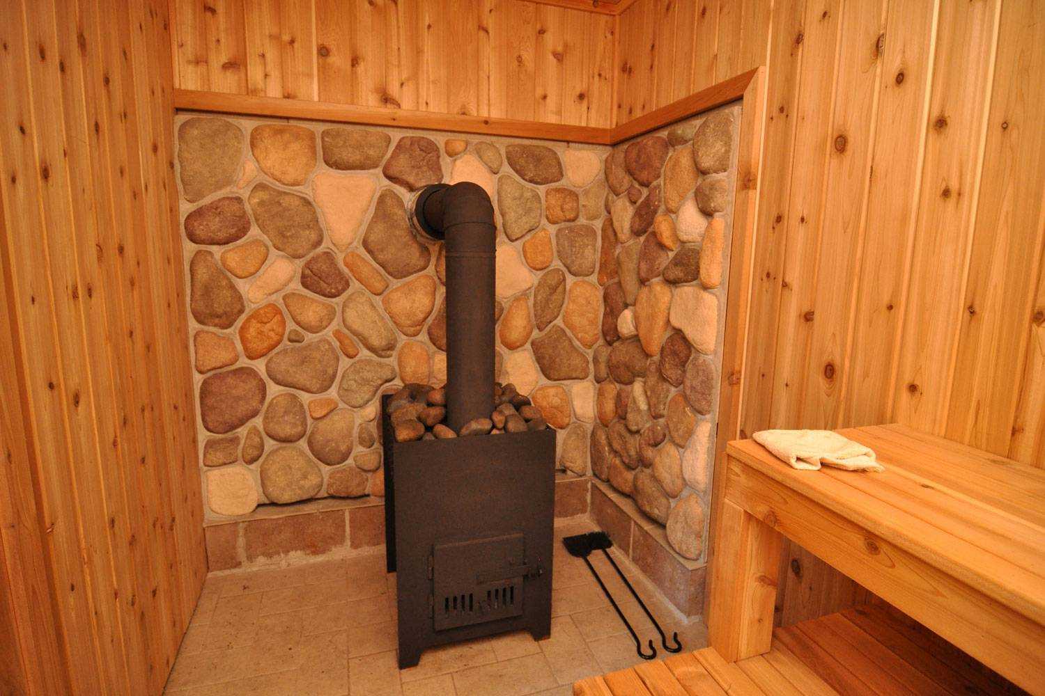 Но любители атмосферы русской бани с ароматным дымком могут обустроить каменку парогенератором. Пар образуется при испарения воды со стенок печи или гофрированных нержавеющих труб.