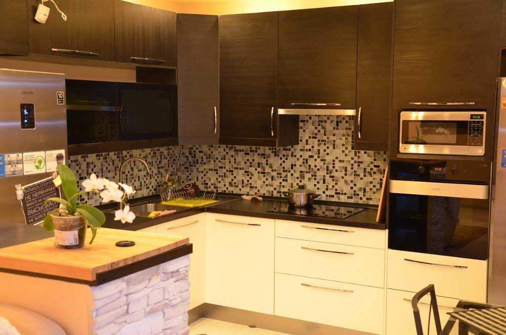 Не стоит забывать про текстуру и различные комбинации цветов и материалов. Обязательно стоит рассмотреть такое решение хозяйкам, которые любят готовить