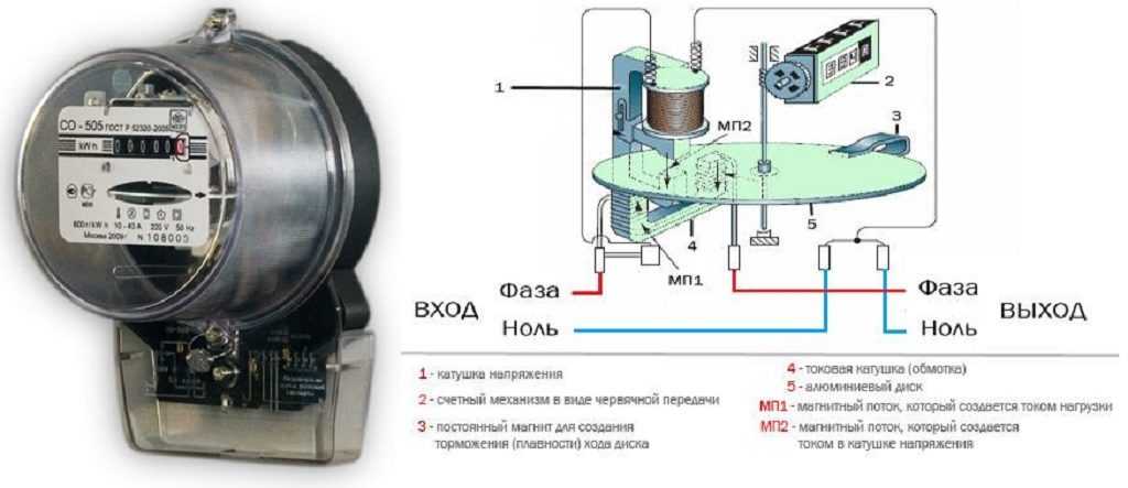 Такие счетчики самые распространенные в квартирах, так как они более дешевые и старые. Срок службы индукционных счетчиков составляет 15 лет, но это условный показатель и, как правило, они функционируют намного больше. Работают эти устройства при помощи двух катушек: тока и напряжения, которые создают магнитное поле и заставляют диск крутиться, считая потребление электричества.