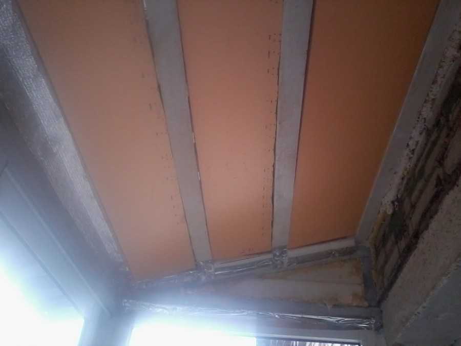 Пенопласт – это вспененная, прессованная масса различной плотности, предназначенная для строительных целей. Материал имеет квадратную или прямоугольную форму и небольшую цветовую гамму, изготавливается плитами. Утепление потолка на лоджии пенопластом обладает долгим сроком службы, может комбинироваться с другими утеплителями, такими как пенофол, но в целом ощутимо утяжеляет конструкцию балкона, а также сокращает площадь помещения.