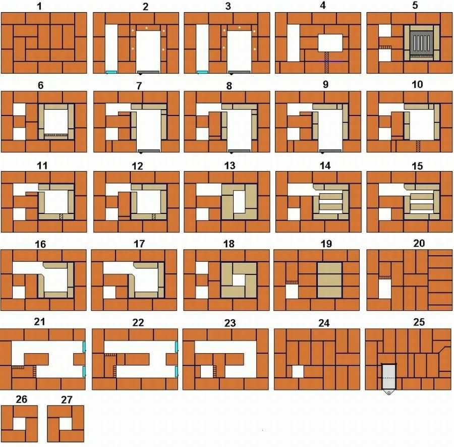 Также нужно, чтобы в одном ряду не использовались шамотный и обыкновенный кирпич. Термальное расширение в данном случае разное, следовательно, могут образоваться трещины, и дымный газ проникнет в помещение.
