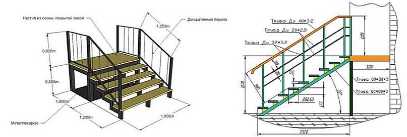 Любая работа начинается с проведения расчетов и изображения на бумаге. Расчет лестницы из профильной трубы позволит вам подсчитать количество материала, который пойдет на производство несущих элементов, оснований для ступенек, а также количества других материалов.
