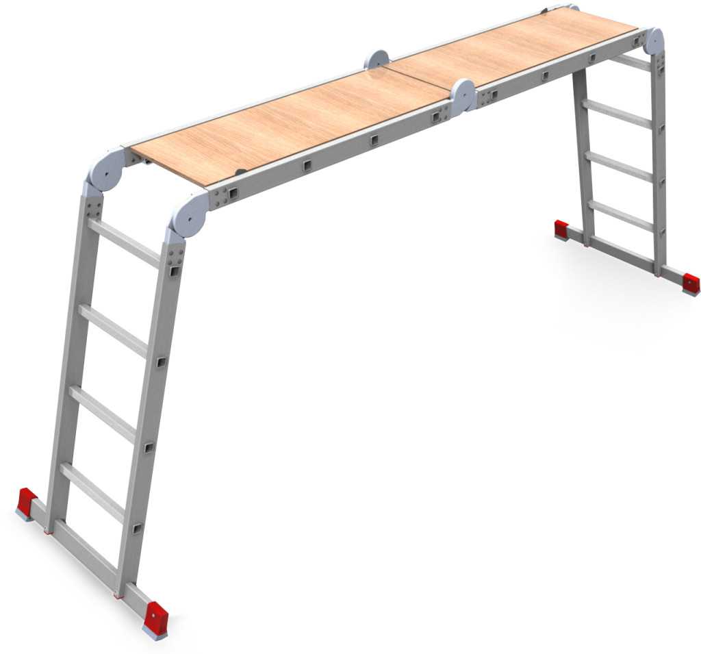 Для специалистов, которые выполняют широкий спектр ремонтно-строительных работ, алюминиевая четырехсекционная лестница трансформер – возможность сэкономить на приобретении лестниц разных конфигураций, получив сразу всё в одном изделии. Если вы покупаете стремянку первый раз, попробуйте взять аксессуар в аренду — так вы сможете оценить все особенности оборудования лично.