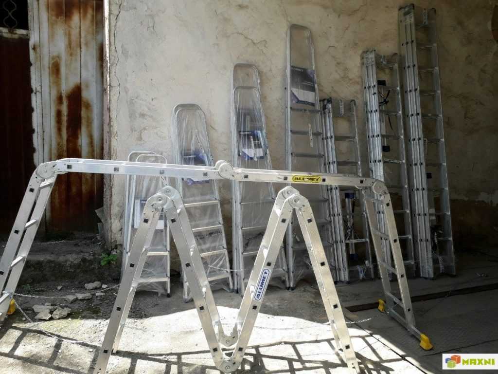 Лестницу складную алюминиевую трансформер длиной до 8 метров используют часто, приобрести такое оборудование не сложно.