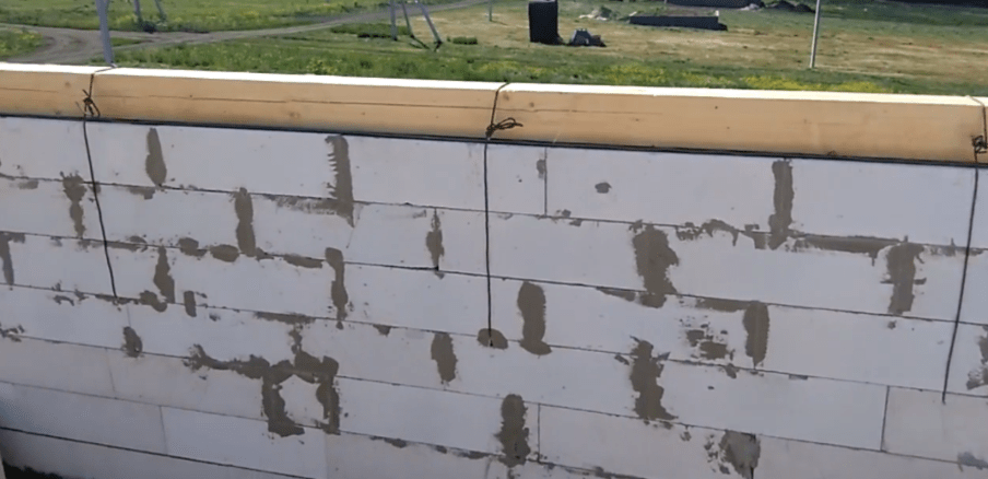 В результате образуется единая система с высокой жесткостью для использования в качестве опоры для стропил. Ширина бруса всегда меньше ширины газоблока, поэтому материал нужно смещать к внутреннему краю. При этом до внешнего края должно оставаться расстояние более 5 см. Иногда по внешнему краю укладываются кирпичи, упирающиеся в боковые части мауэрлата.