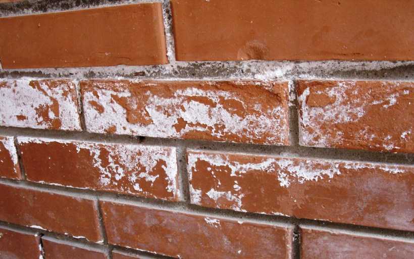 Также не качественный кирпич может проявлять соль, что будет выражаться в виде белого налета на кирпиче, который тяжело убрать.
