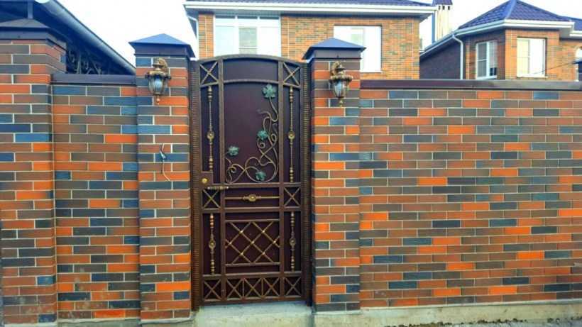 Вариантов кирпичного забора много – это может быть полноценный забор стена или кирпичные столбы с кованной решеткой. У кирпичного забора много плюсов:
