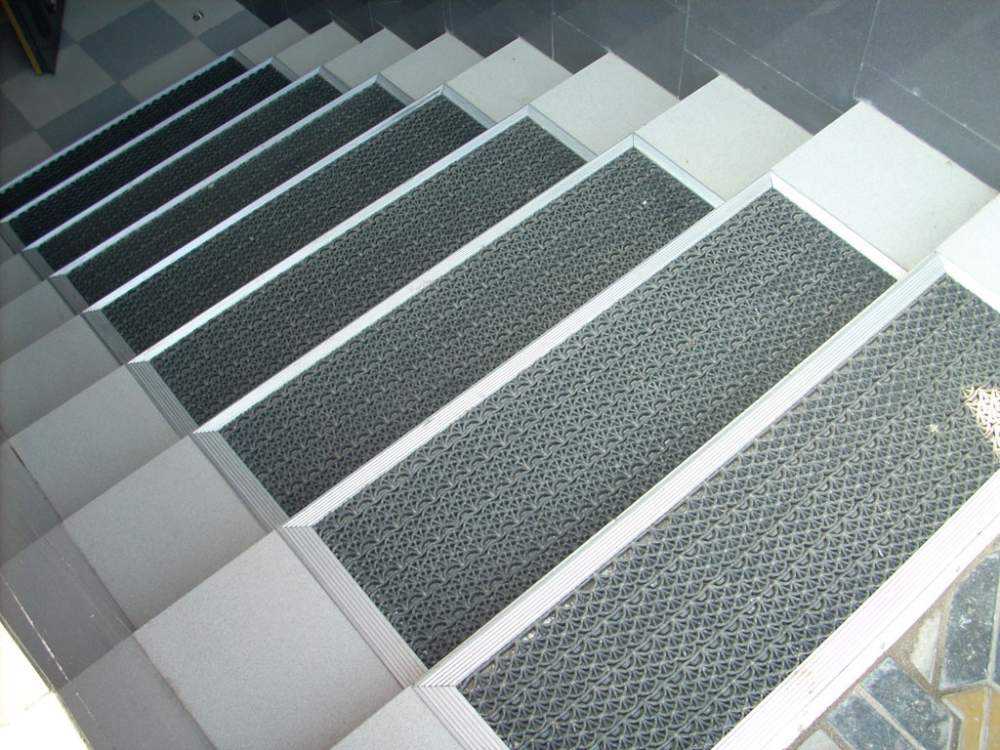 Эти коврики служат не только защитой пешеходов от падения на скользких ступенях. Они еще и собирают грязь с обуви людей, перемещающихся по лестничному маршу. Кроме того, ковровое покрытие, выполненное из ковролина, может стать элементов дизайна интерьера.