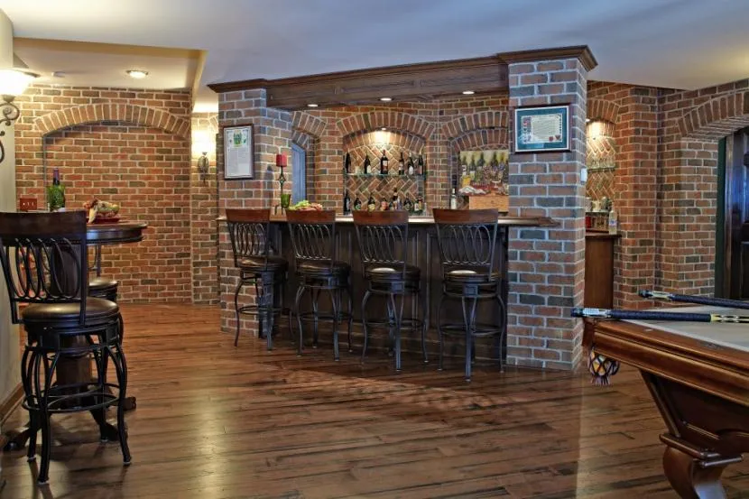 - Заядлые тусовщики могут поставить в подвальном помещении барную стойку, покрыть стены шумоизолирующим материалом, установить качественную аудиосистему и приглашать гостей хоть каждый день. А светомузыка и диско-шар превратят эту комнату в настоящий мини-клуб.