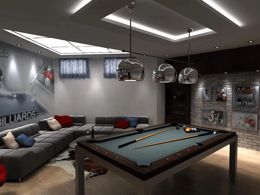 Бильярдная. Какой отец семейства не мечтает о комнате, где можно общаться с друзьями, смотреть футбол и при этом не мешать домочадцам? В этом случае бильярдная – собирательное название; она дополнительно может вмещать мини-бар, место для настольных игр, телевизор и мягкую мебель. Если в комнате будут курить, потребуется мощная вытяжка.