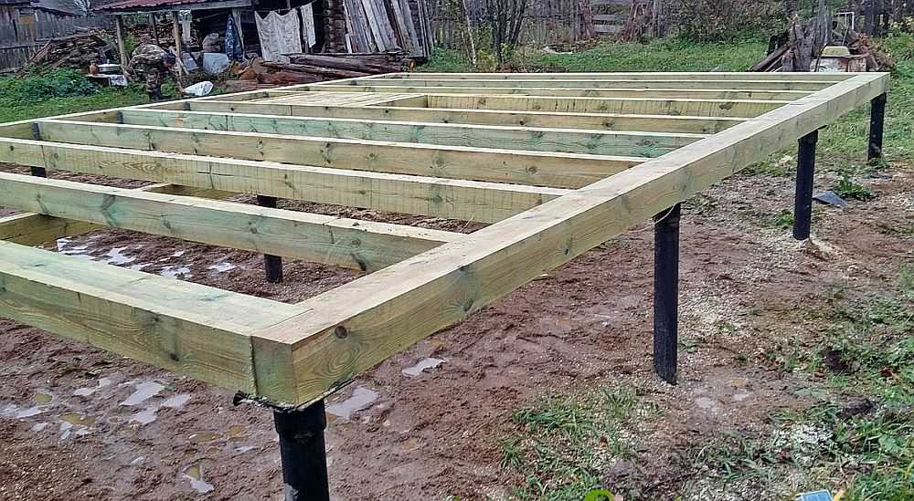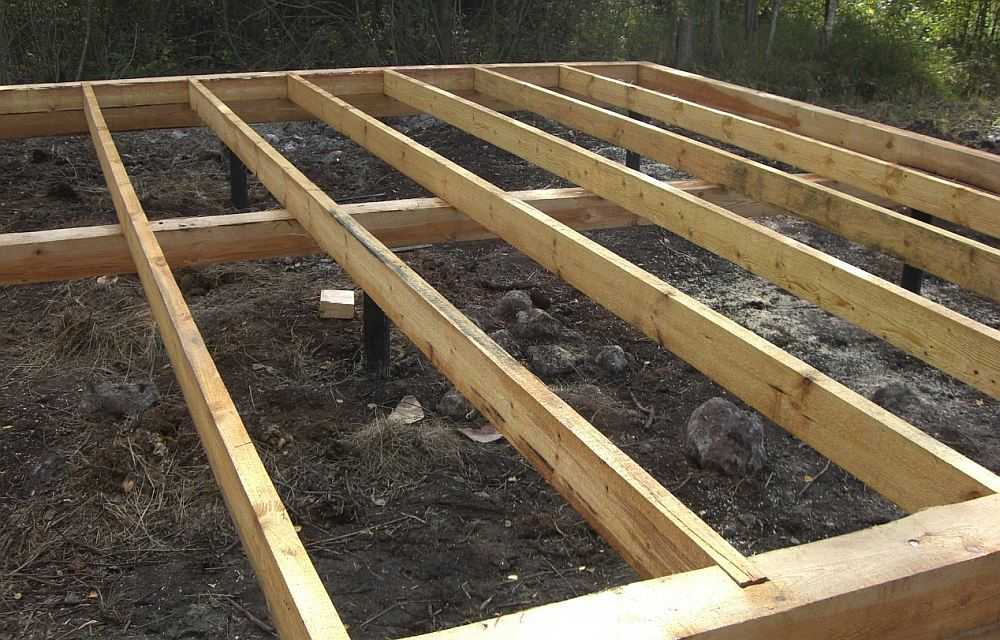 - Монтируем черновой пол и создаем надежную площадку для установки стен.