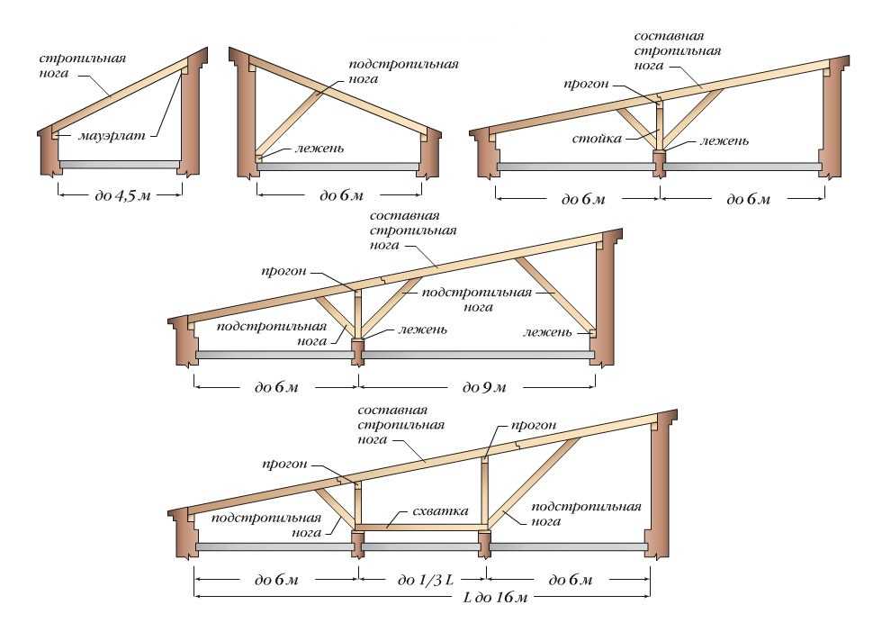 Особенности стропильной системы зависят от материала стен здания и его размеров.