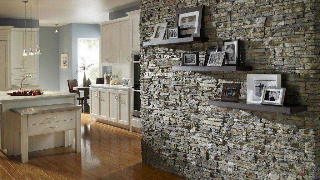 Кухня Выделение столовой или рабочей зоны, создание кухонного «фартука». Декоративный камень устойчив к влаге и парам. За ним просто ухаживать, и он идеально вписывается в любые по размеру кухни;