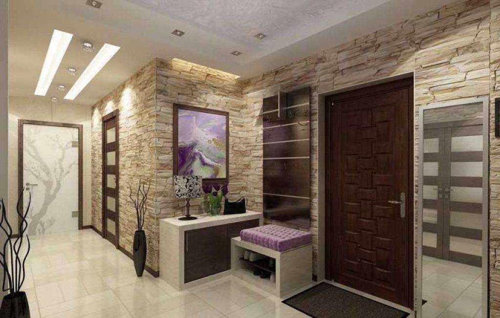 Прихожая Отделка стен. Такой вариант указывает на высокий статус и наличие чувства вкуса хозяев квартиры. Рекомендуется использовать для декорирования одной или нескольких зон, или же полностью облицевать одну из стен. В зависимости от цвета можно добиться разных визуальных эффектов: так светлый зрительно расширяет пространство, в то время как темный поглощает его;