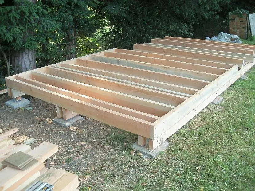 Монтаж лаг для пола сараяИсточник nl.pinterest.com