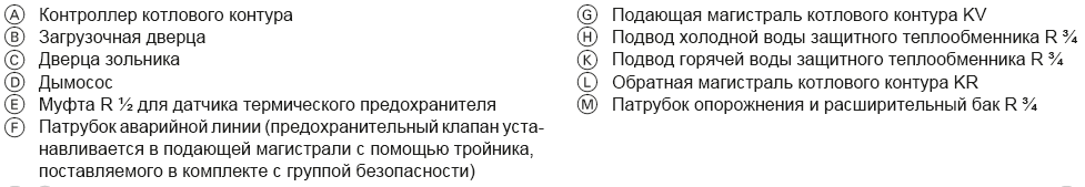 Температура горения может достигать 1200°С. Вода, находящаяся в наружном теплообменнике, нагревается и циркулирует по системе отопления дома. Остатки продуктов сгорания удаляются через дымоход.
