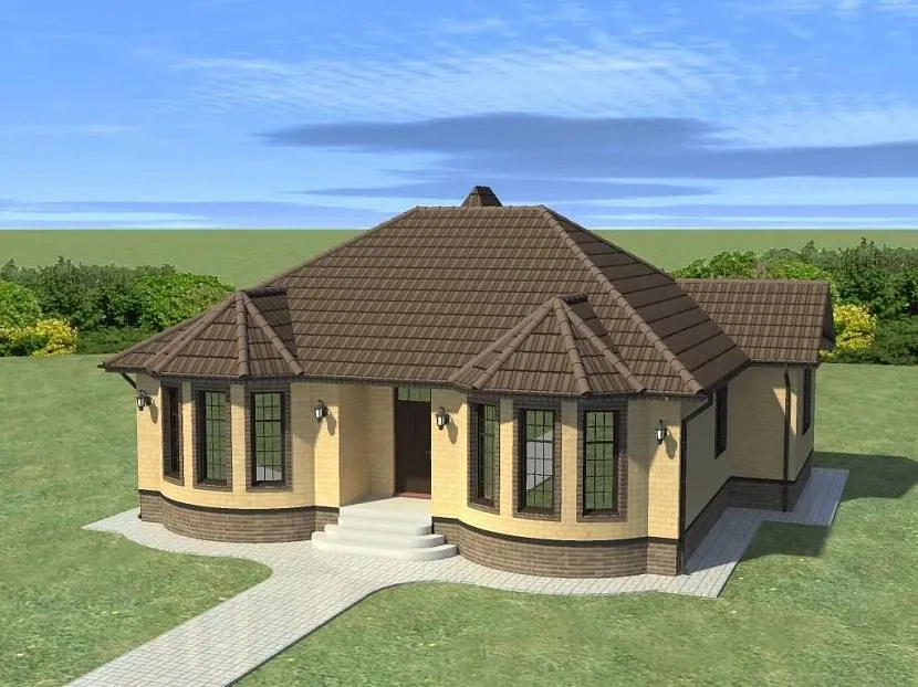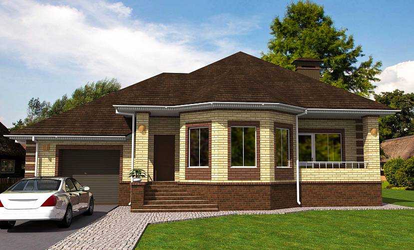 Одноэтажный дом 10х12 с эркерамиИсточник yandex.uz