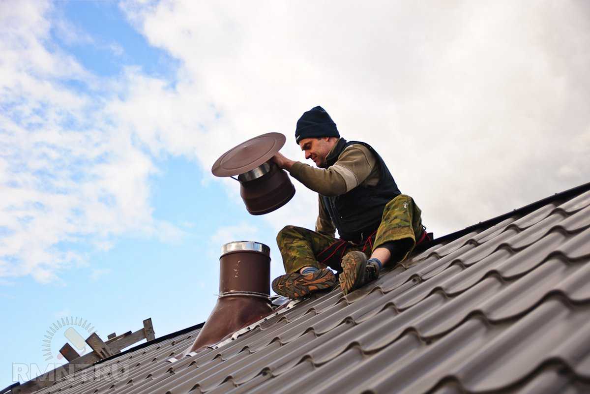 - устройство обрешетки и металлочерепицы на проход трубы;