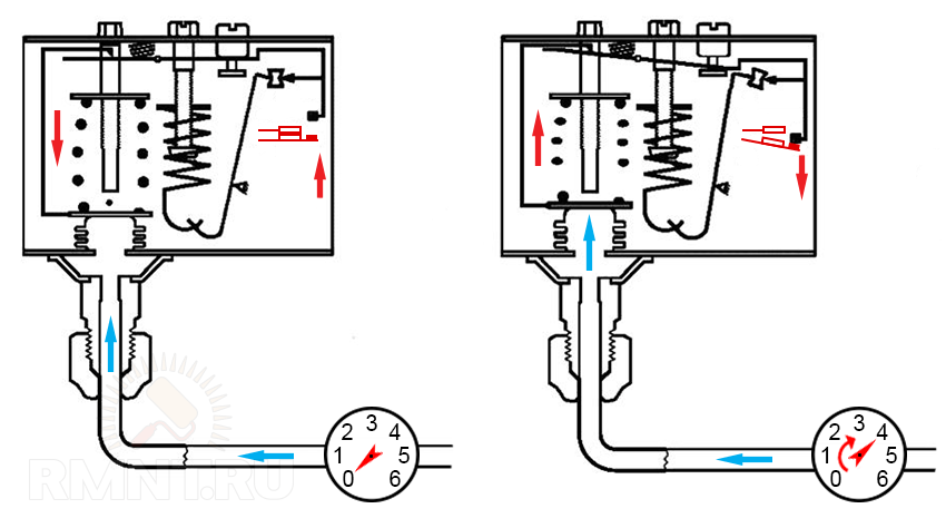 Затягивать настроечные гайки на реле до упора допустимо, но крайне не рекомендовано. Прибор с жестко затянутыми пружинами будет работать с большими погрешностями по выставленным Рпуск и Рстоп, и в скором времени выйдет из строя.