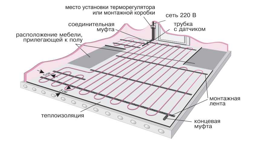 - змейка помогает распределять районы нагрева (обойти мебель либо сантехнику);