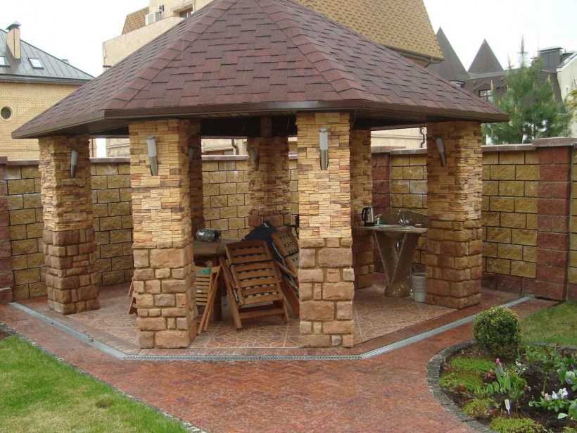 К нестандартным вариантам принадлежат восьмиугольные беседки, конструкции с куполообразной крышей, стилизованные строения. Они требуют большего количества материалов и определенных строительных навыков, поэтому обойдутся дороже.