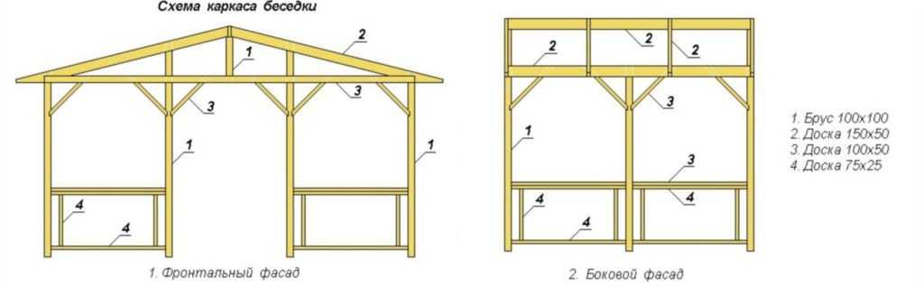Самый популярный строительный материал для каркаса деревянной беседки — брус с размерами 100 на 100 мм либо 150 на 150. С их помощью можно выложить: